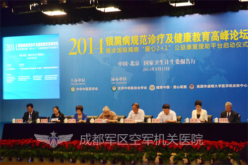 9月13日,由中华中医药学会主办,世界中西医结合学会、健康中国·爱心联盟、美国华盛顿大学医学院皮肤中心联合协办的2014银屑病规范诊疗及健康教育高峰论坛暨全国银屑病“爱心2+1”公益康复援助平台启动仪式在国家卫计委隆重召开。来自世界各国的数百位医疗专家、教授、学者、银屑病诊疗一线医护人员齐聚,共同探讨、分享国际银屑病诊疗技术新进展。中国人民解放军成都银康银屑病医院专家戴礼,受邀参加此次大会。